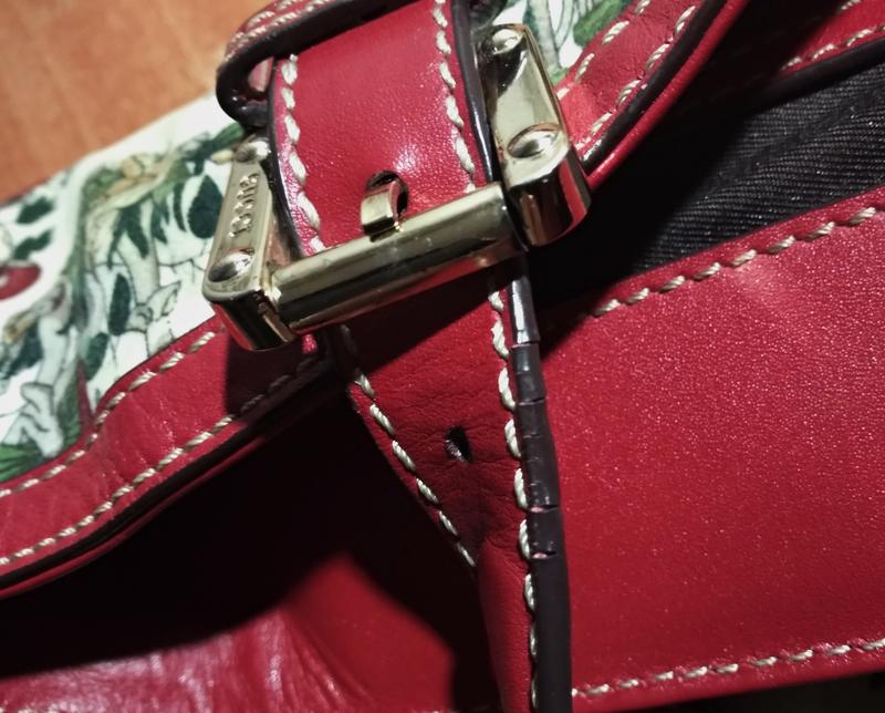 металл. золотистые брендированные пряжки держат ручки (в основаниях ручек есть едва уловимые мелкие трещинки по бокам, последнее фото)