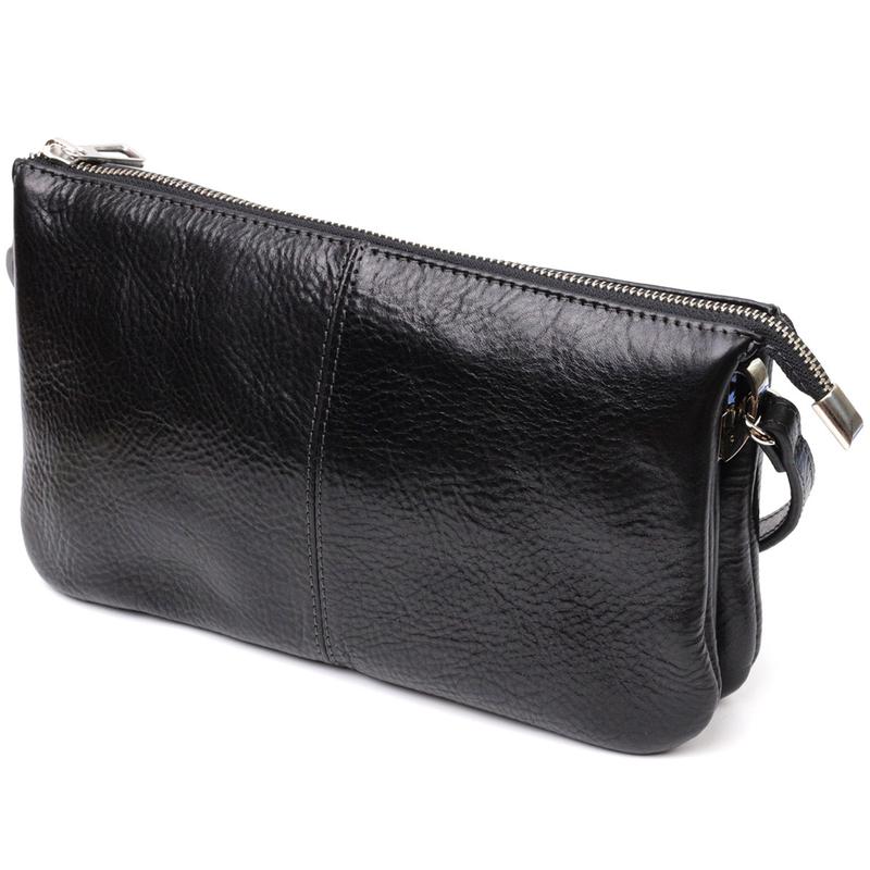 Чорна сумка клатч на плече, через плече шкіряна люкс якості.