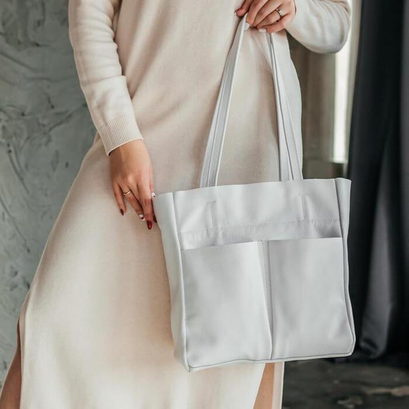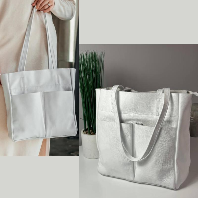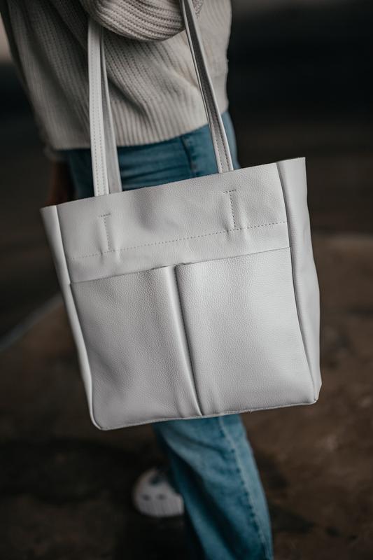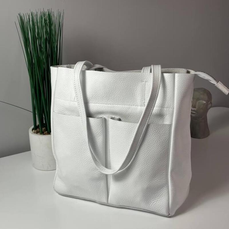 Жіноча сумка через плече шкіряна біла сумка шоппер на блискавці з