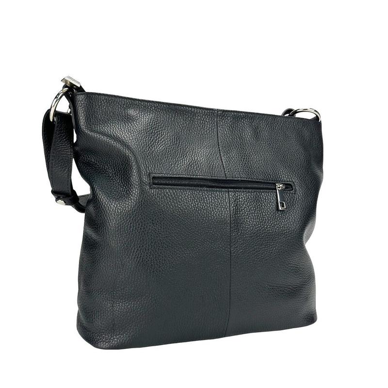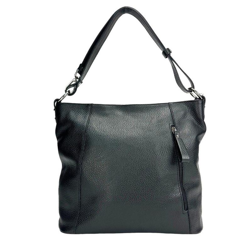 плече, чорна виготовлена з м'якої натуральної шкіри, з зернистою фактурою.