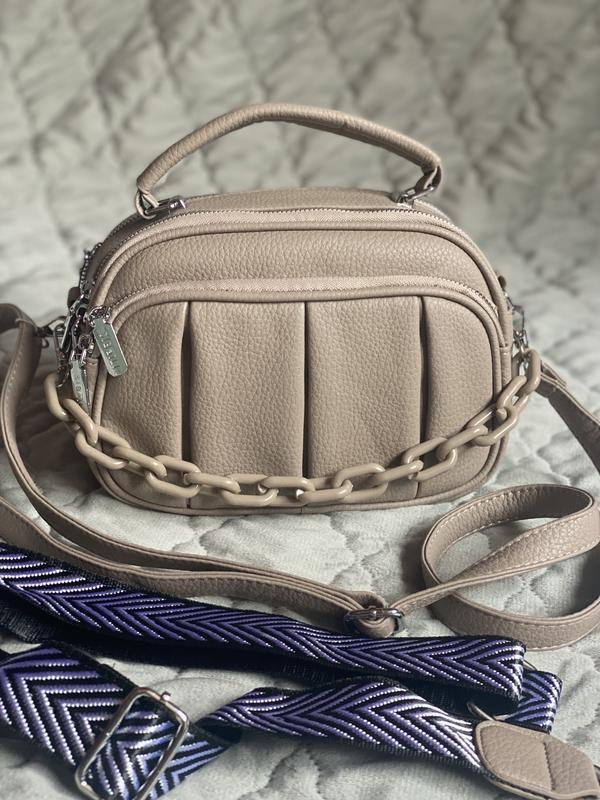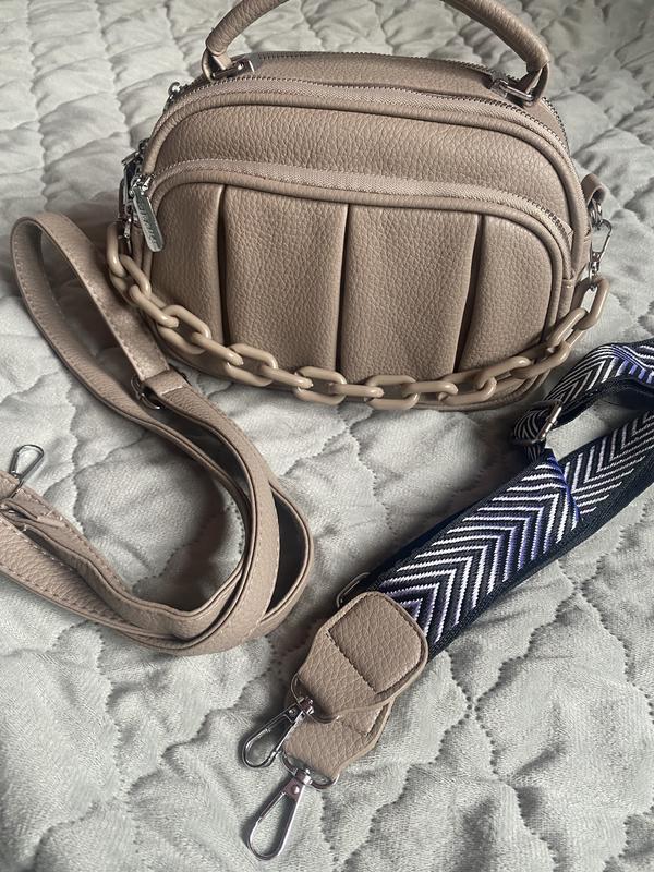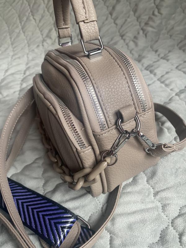 Красива, якісна, дуже зручна сумочка із еко шкіри. До сумочки йдуть два ремінці (широкий і тонкий) Прикраса - ланцюжок, так само можна зняти.