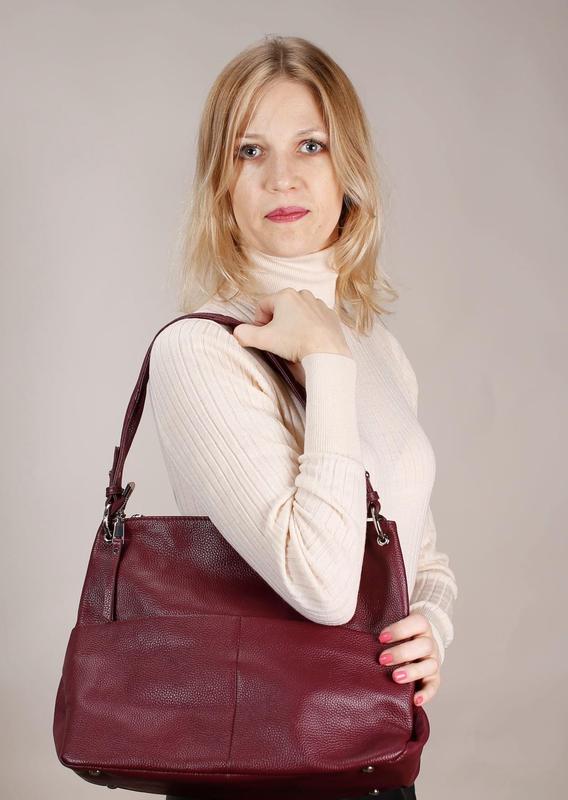 Сумка з натуральної шкіри в кольорі бордо. Стане незамінною й найулюбленішою. Виготовлена з якісної шкіри, має великі відділення в середині й одну ручку.