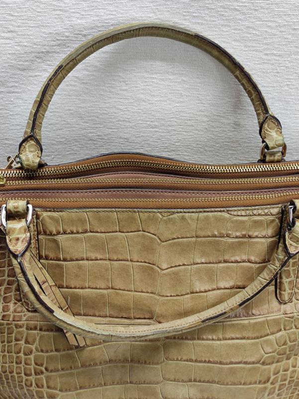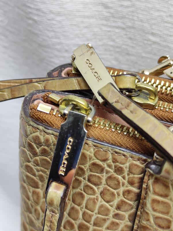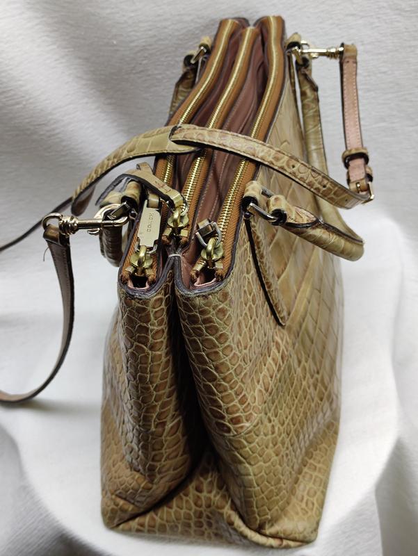 Сумка вінтажна, присутні сліди використання на кутиках, в середині сліди від ручки, світліший колір на ручках, одна ручка трішки не рівної форми, у використанні не помітно.