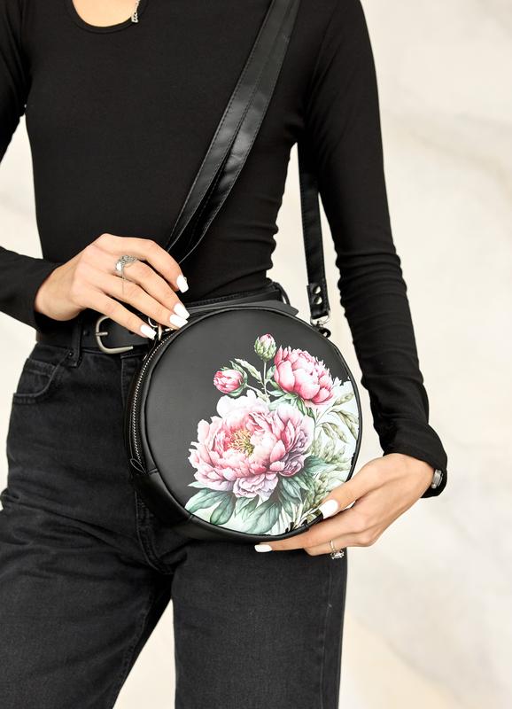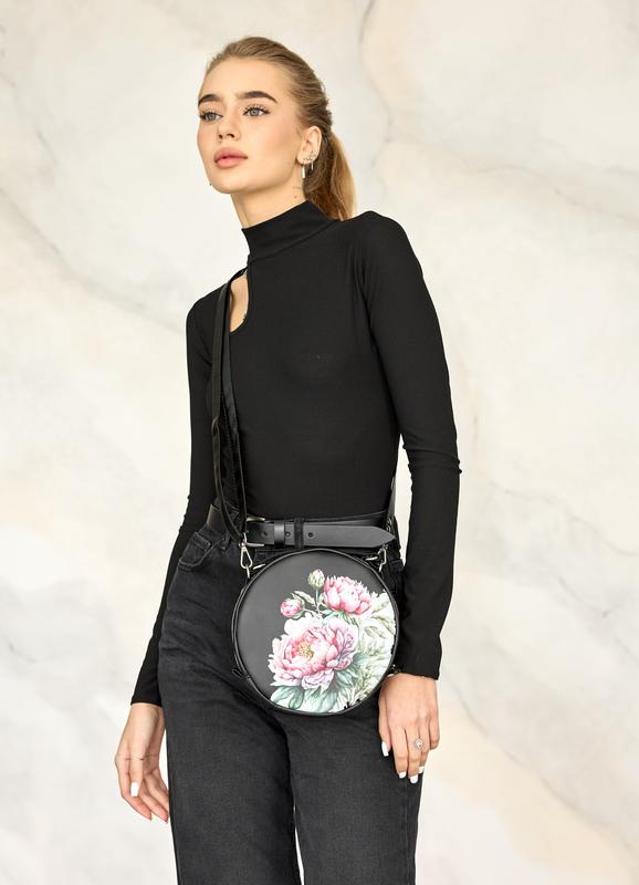 Характеристики круглої жіночої сумочки Bale з принтом Flower
