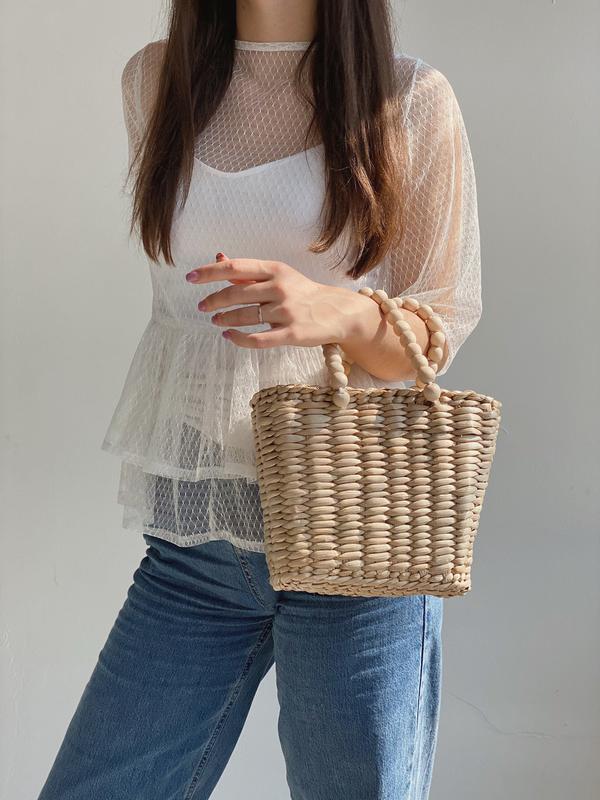 - Корзина з натуральной соломки, ручки з великих намистин.