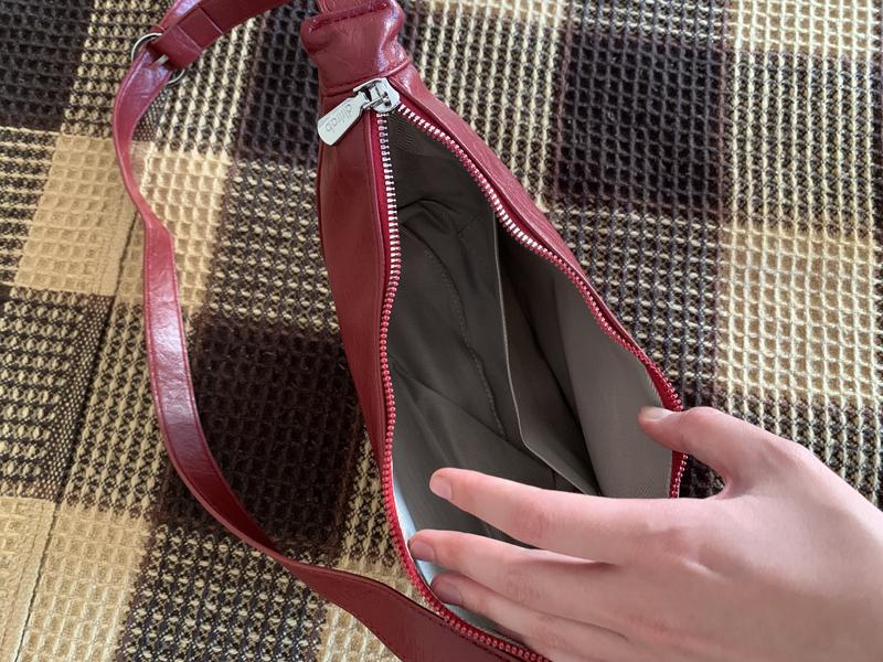 Червона шкіряна сумка