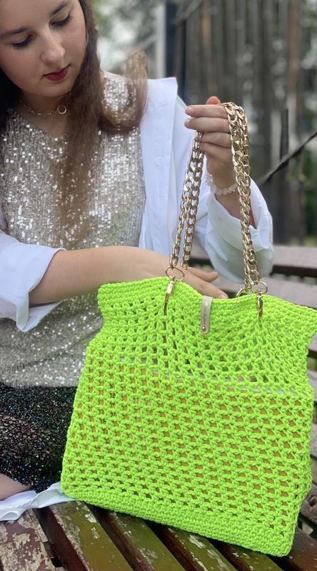 Сумка сітка дизайнерська екосумка шопер вʼязана авоська неонова з ручками- ланцюжками