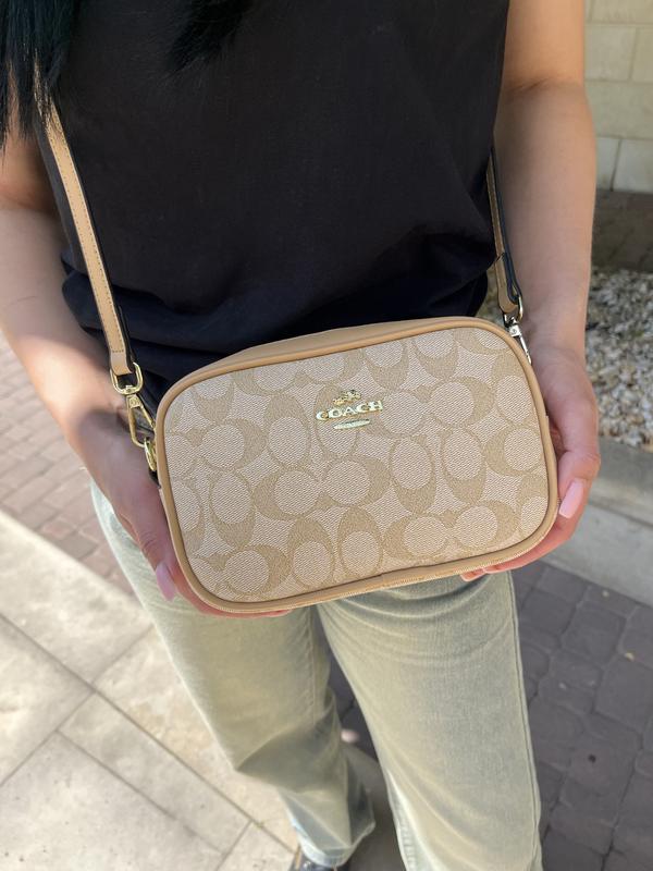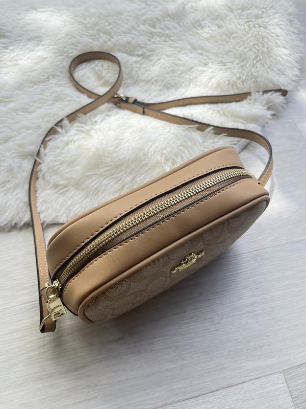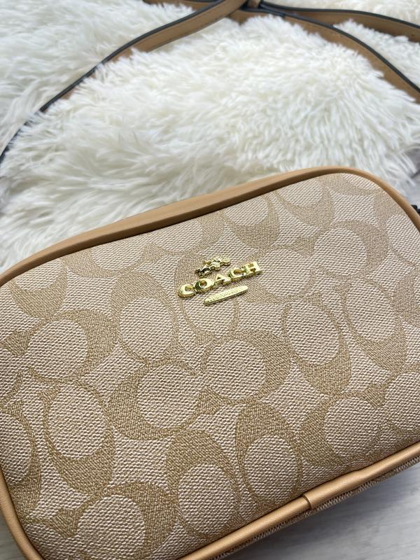 Сумка als coach mini klare crossbody in signature canvas beige/brown