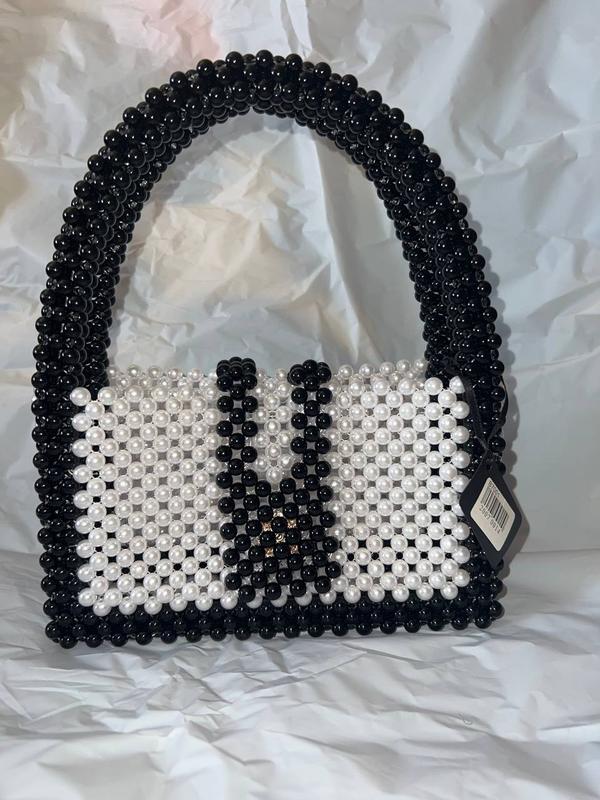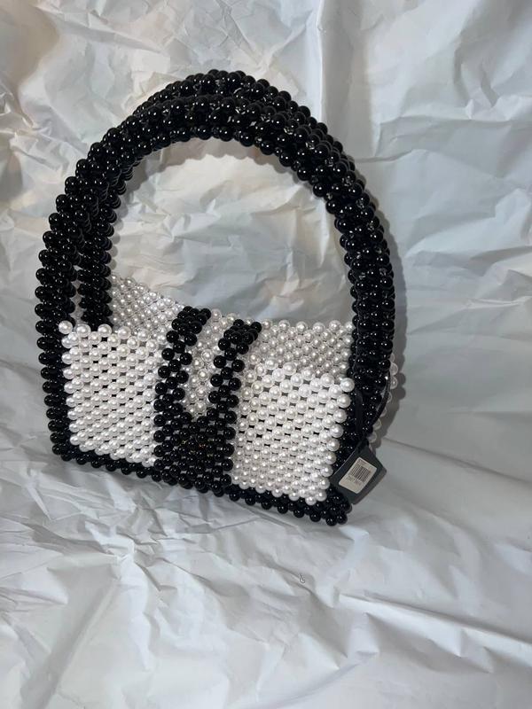 Тренд стильна чорно біла жіноча в'язана текстильна сумка шопер