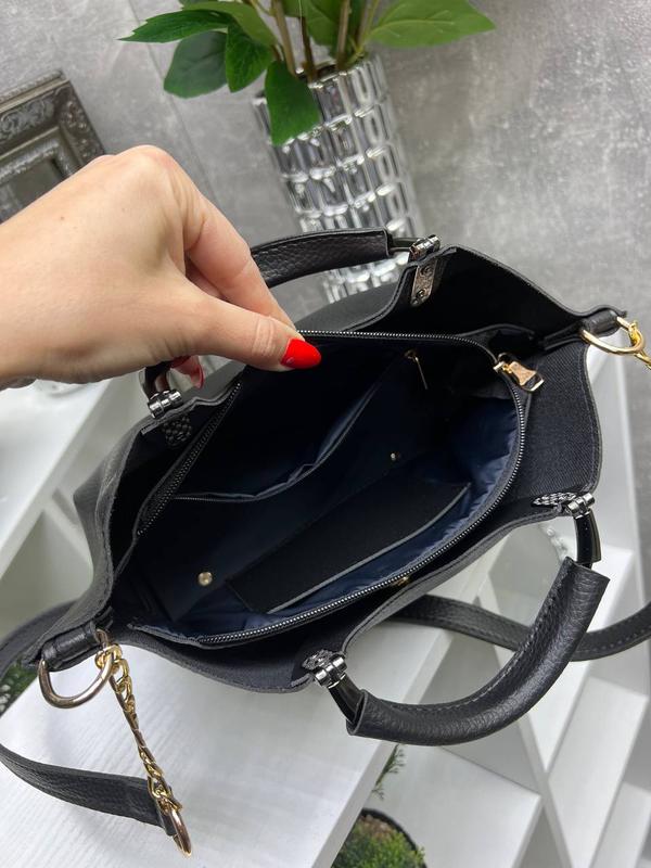Три відділи: середнє на блискавці, всередині кишеня для телефону і внутрішня кишеня на блискавці, інші два відділення на кнопці.