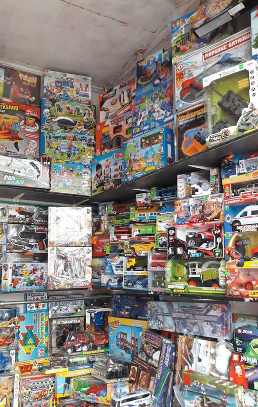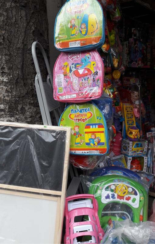 всередині та зовні для виставки товару. Кіоск забитий товаром (дитячі