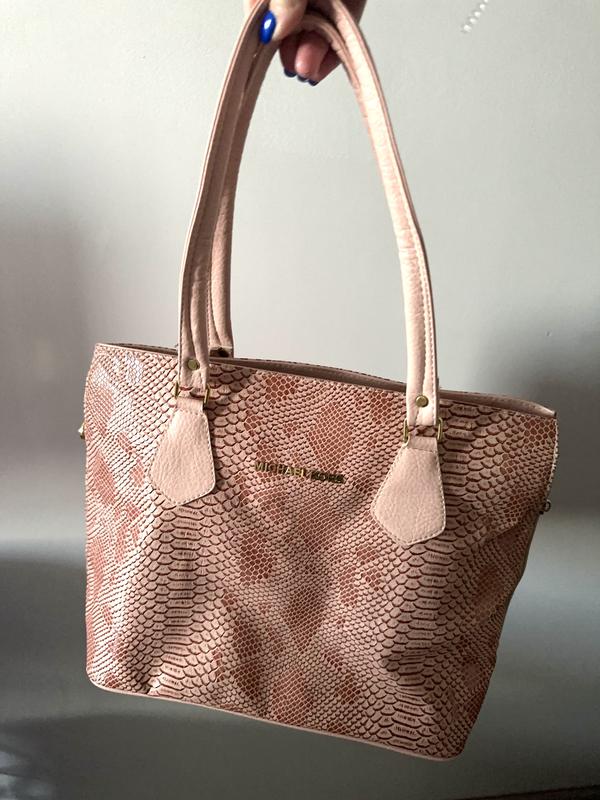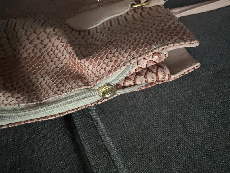 Ручки цілі, підкладка чиста, в комплекті довгий пояс, стан ідеальний. Низ чистий. Трогки букви по терті