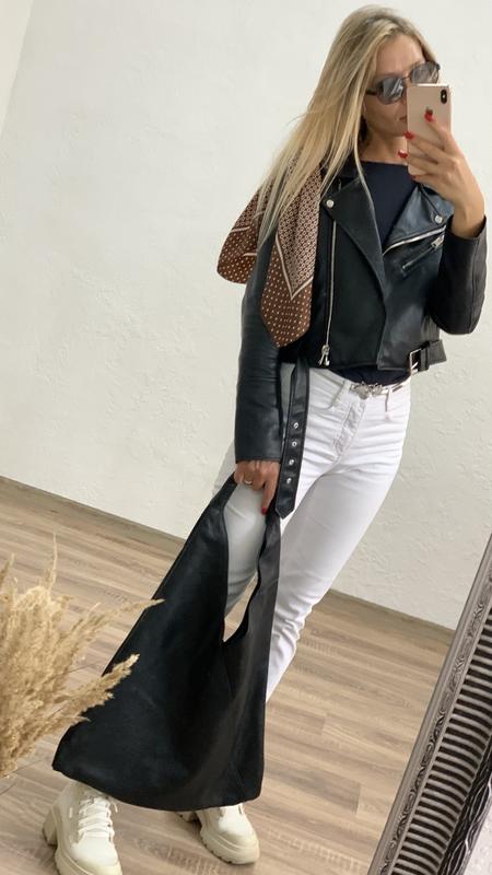 Сумка шкіряна велика чорна шопер з мʼякої шкіри