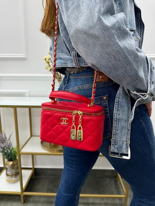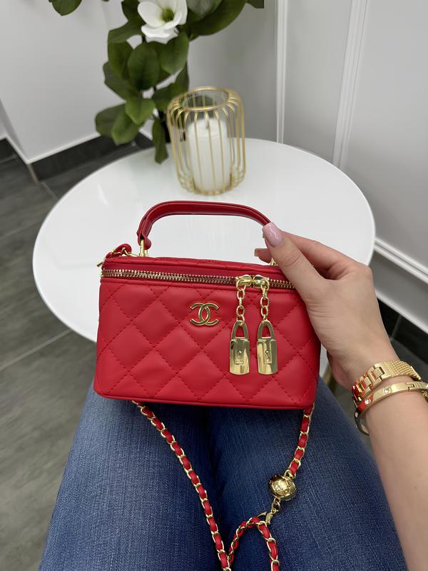 Для носіння через плече є довгий тоненький ланцюжок із вплетеною шкірою (не відстібається, регулюється по довжині)