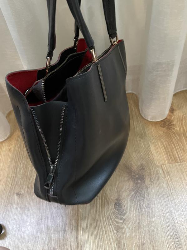 30 см ширина по дну. 27 см ширина зверху. 23 см висота. 12 см Глибина. Висота ручок 16 см. Три відділення: середнє відділення на блискавці, всередині кишеня для телефону та внутрішня кишеня на блискавці. Інші два відділення на магніті. З боків сумки блискавки, які дозволяють збільшити внутрішній об'єм.