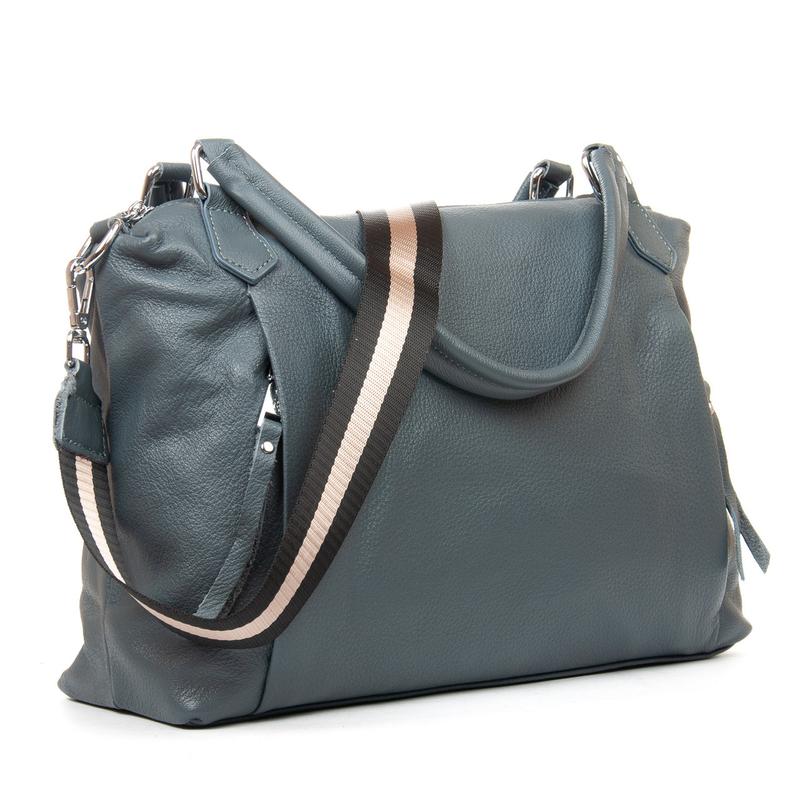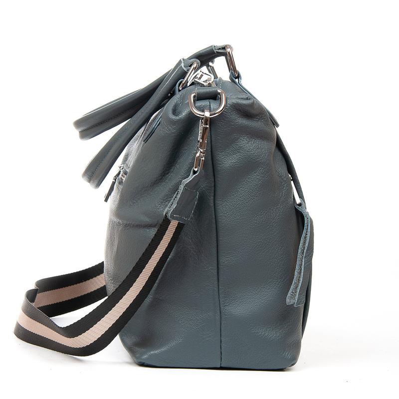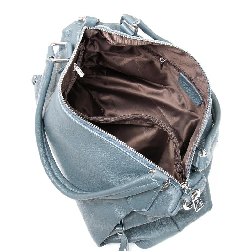 Синя сумка жіноча класична шкіряна на плече дві ручки і подвійне відділення з