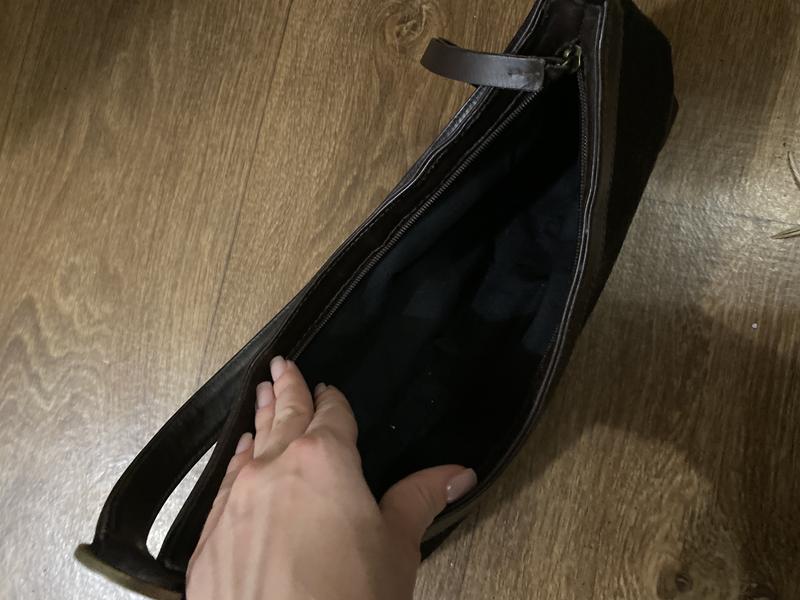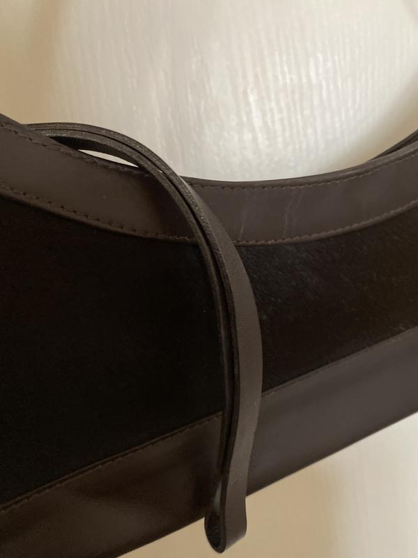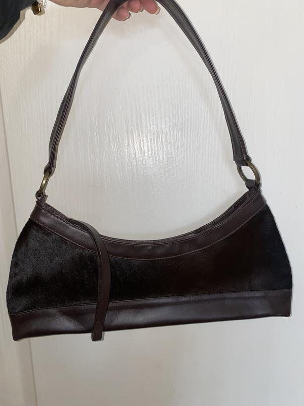 Коричнева шкіряна сумка з хутром поні сумка багет в стилі hvoya коричневая тренировая...