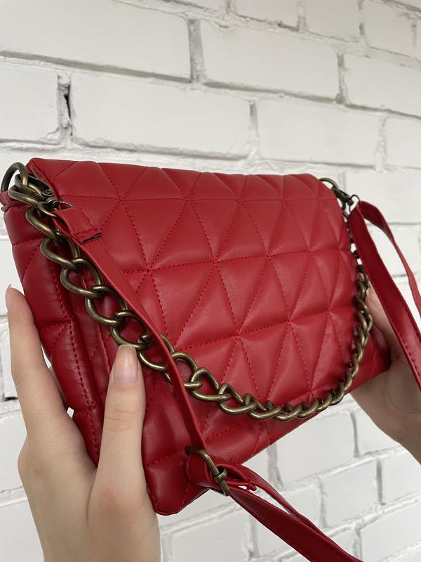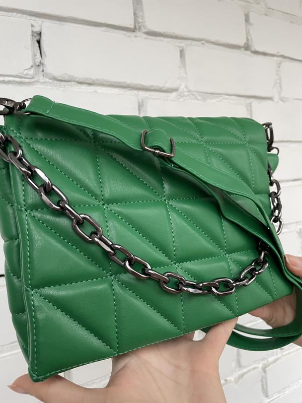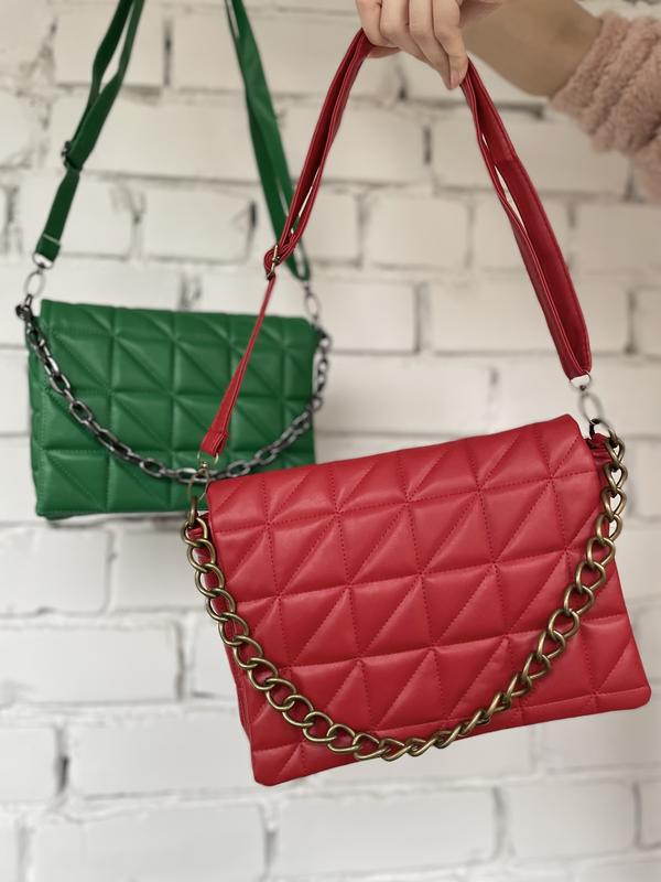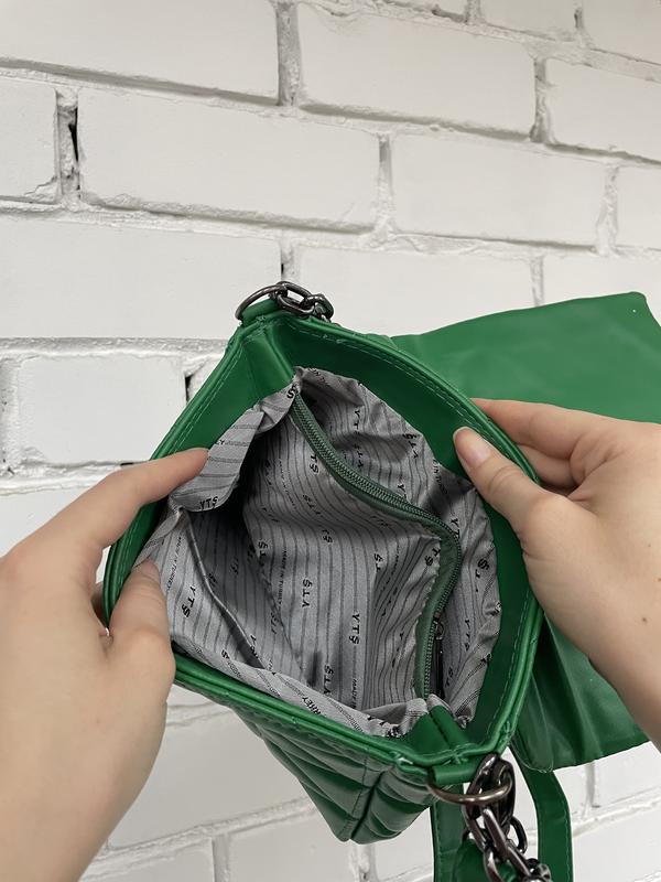 Ремінець через плече та ланцюжок. В зеленій 2 відділи.