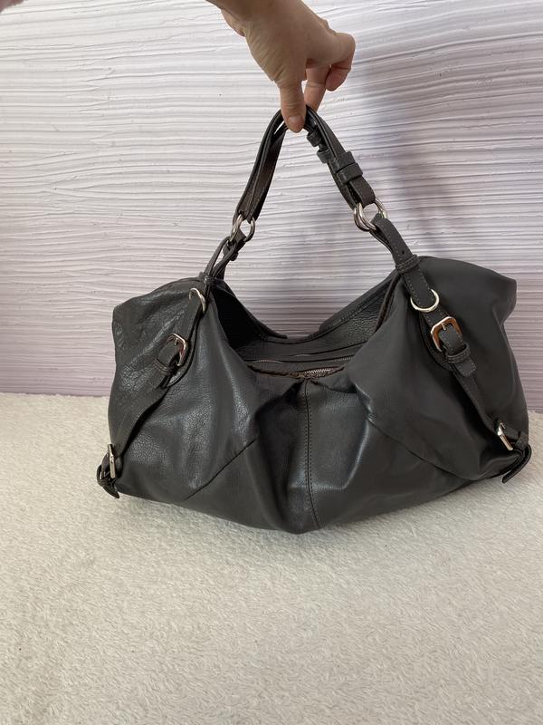 Об'ємна містка сумка на три поділки із застібками на змійку. Колір ближче до сірого, шкіра м'яка. Стан ідеальний, як нова, без нюансів. заміри на фото. Дивіться й інші свої оголошення.