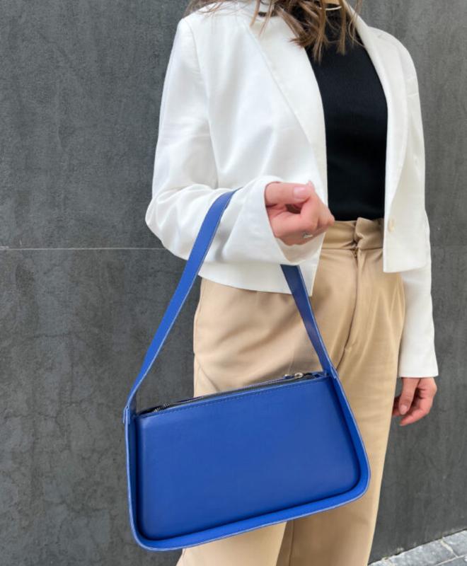 Сумка багет колір електрик ідеальний стан • розміри: 29/16/8 см • матеріал — високо якісна екошкіра • на змійці , в середині підкладка • ділиться на 2 відділення • 2 кишені на замку і 1 відкрита • довжина ремінця 61 см