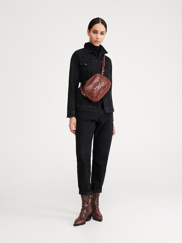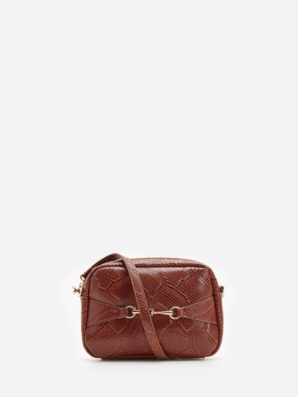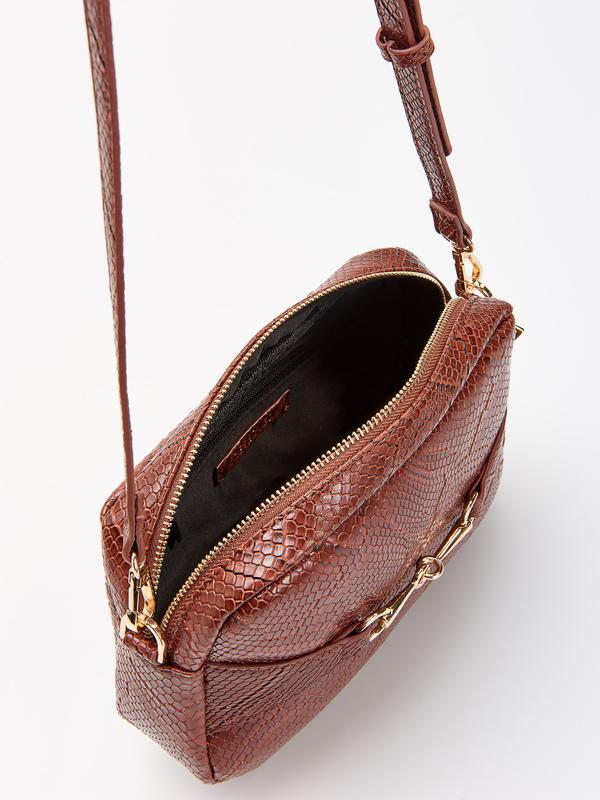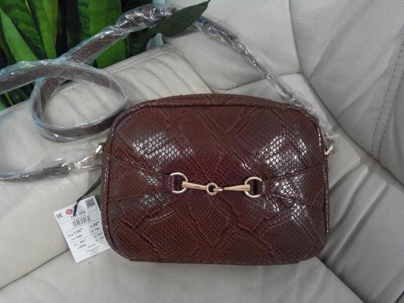 Сумка шкіряна reserved коричнева невелика з короткими товстими ручками скручена ручка тренд
