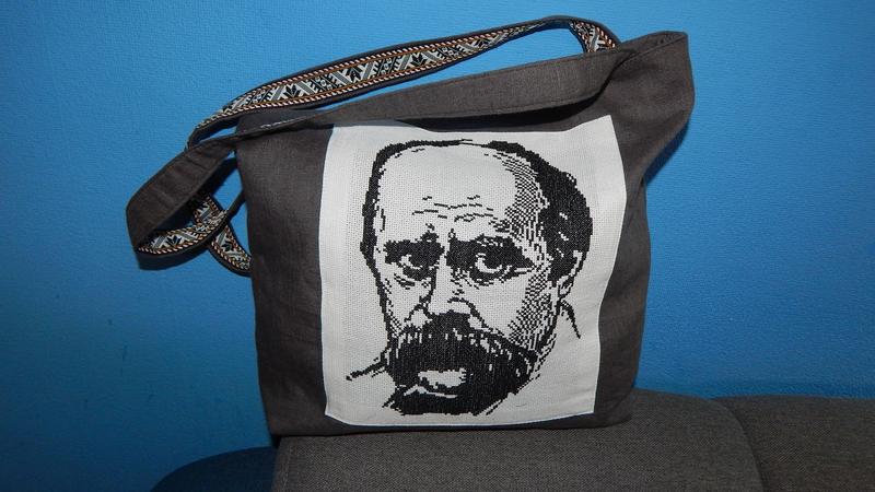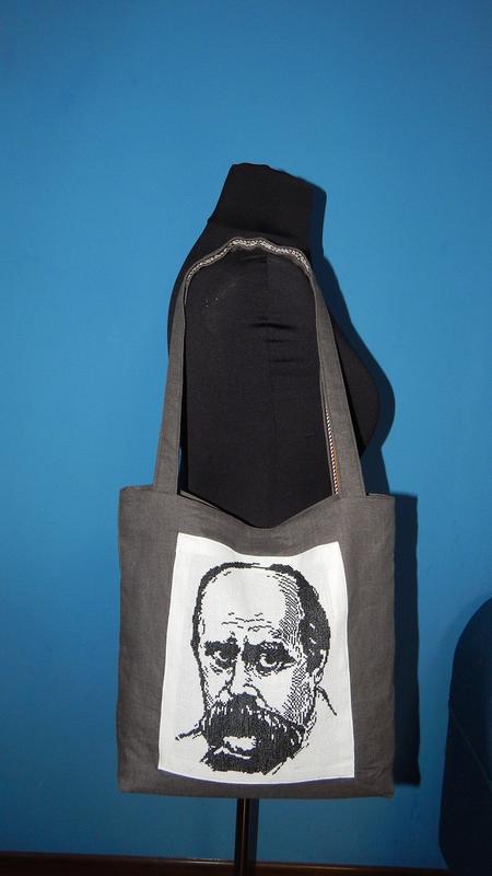 Красива еко сумка з льону з вишивкою (ручна вишивка) "Т. Г. Шевченка". Зроблена в одному екземплярі з натуральних матеріалів. Сумка з підкладом. На внутрішній стороні є кишеня. Закривається виріб на блискавку. Внутрішня сторона сумки оздоблена стрічкою з орнаментом. Розмір 32X30 див. Прекрасний подарунок для справжніх патріотів. Обирайте своє і будьте неповторними!