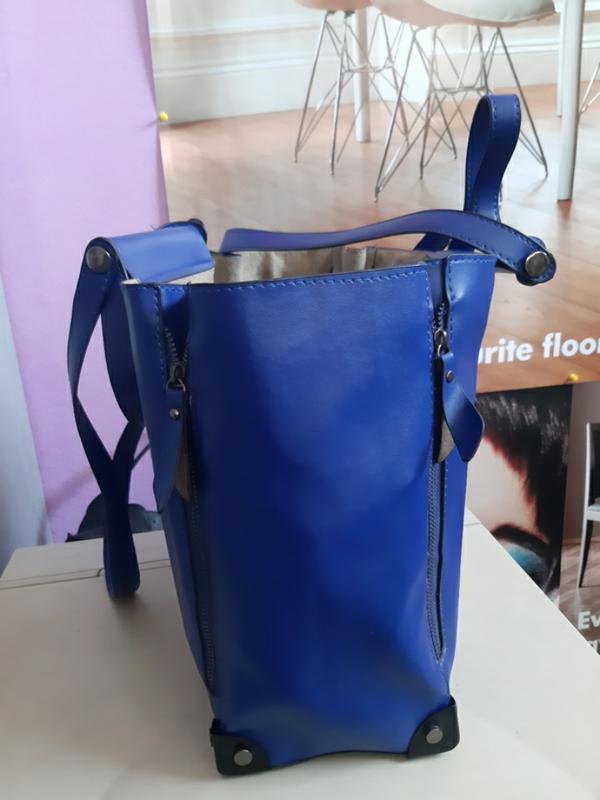 Яскрава .кольору електрик велика сумка шоппер (пляж.літак.подорож) і косметичка (клатч або просто внутрішня сумочка). Дуже комфортний і місткий.чотири бічних замку розширювача і чотири ручки дві короткі та дві довгі.Заміри велика сумка ширина 33 висота 28 глибина 14 .дві довжин.ручки 74 см косметичка ширина: 29 висота 21 глибина 7 дві ручки довжиною 32 см