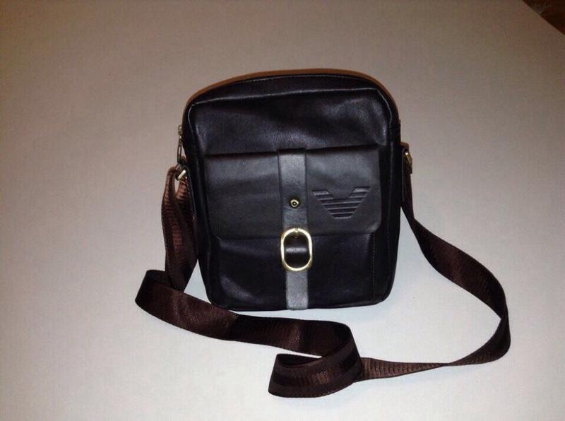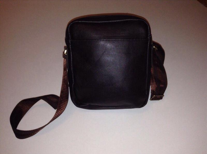 Сумка темно-шоколадного кольору ,є знос,ремінець регулюється,розмір,орієнтир планшет 10 діагональ.Якісний кожзам(еко шкіра)