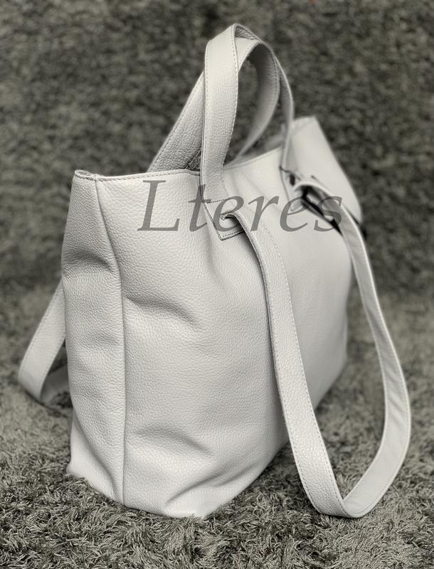 Містка модна сумка-трансформер стане Вашим улюбленим аксесуаром. Практична і зручна шкіряна сумка форми трапеція має дві пари ручок: довгі ( 68см від зрізу сумки) і короткі (30см від зрізу сумки).
