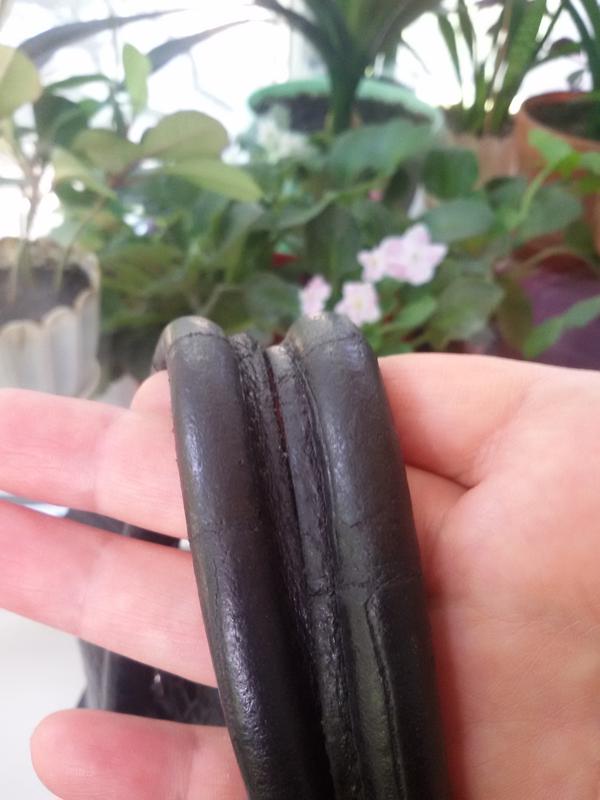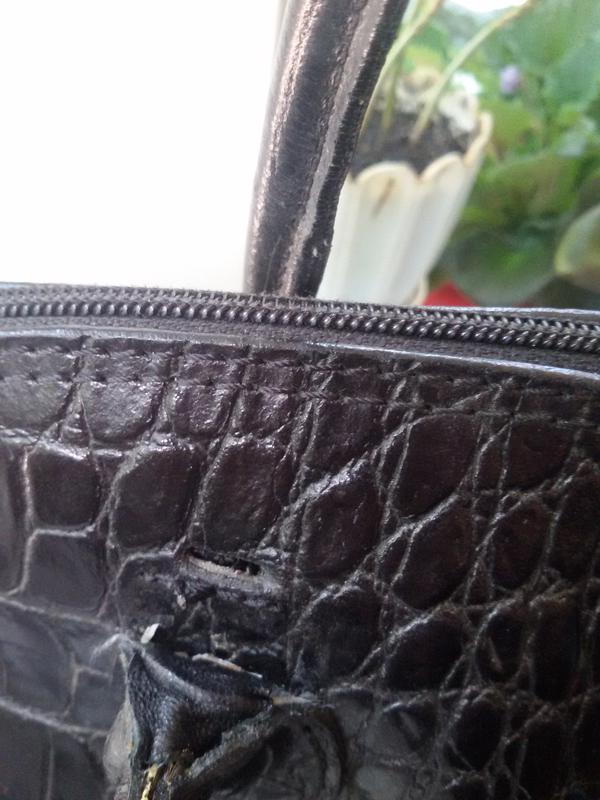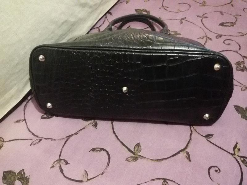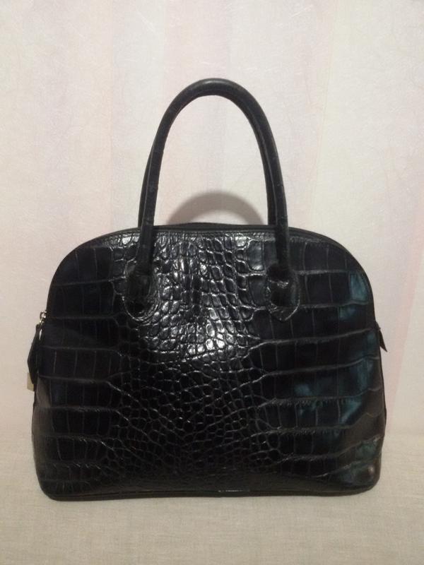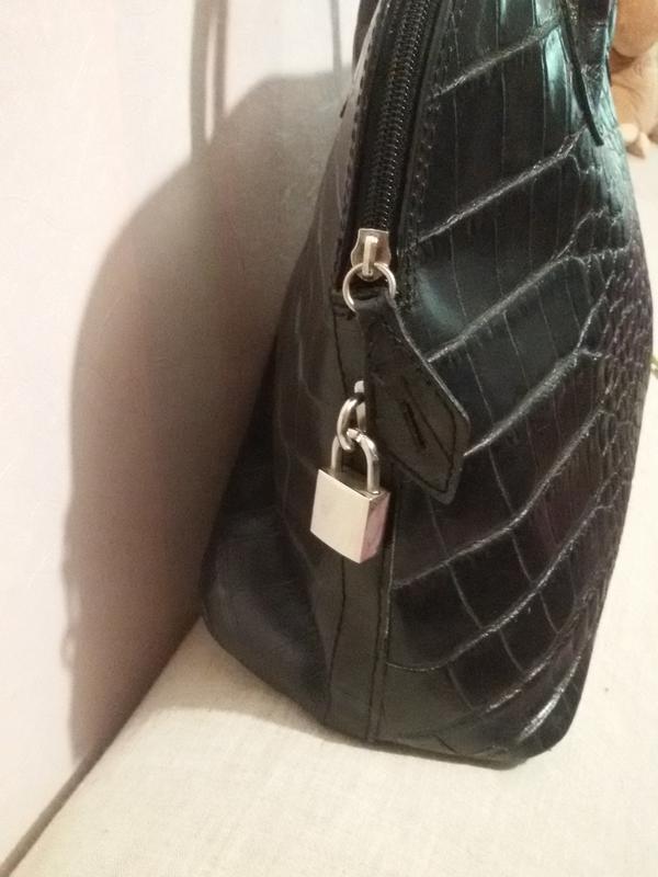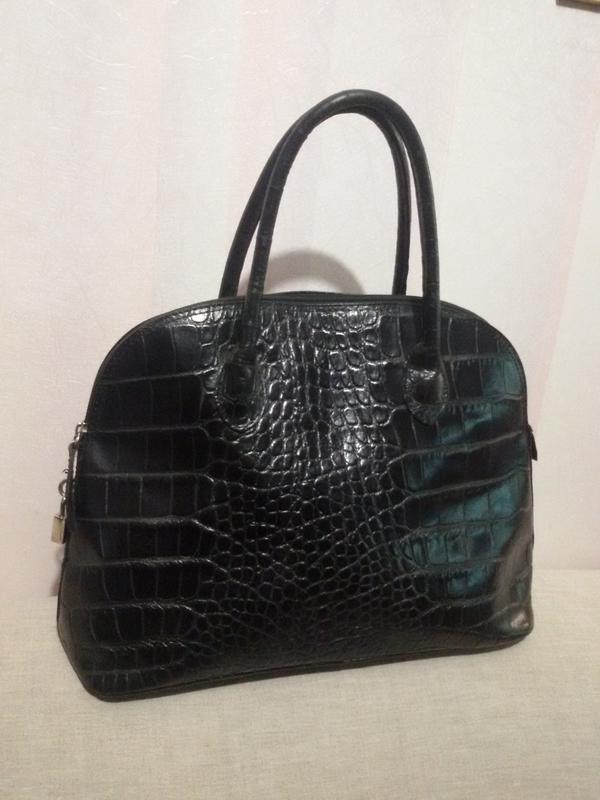 Дуже добротна сумка. Добре тримає форму. Стан дуже хороший. Куточки подкрашивались спеціальною фарбою для шкіри, не взуттєвої. Тому потертостей на кутках не видно. Носилася дуже акуратно. Дуже зручна і містка. Всередині чиста. Всередині по боках дві кишені для ключів та на блискавці. Заміри: Ширина 40 см Висота 27 см Дно 35 см х 14 см Довжина ручок 45 см Папка з файлами входить. Зауваження на передостанніх двох фото. Немає одного колечка для довгої ручки. В шкарпетці не видно, т. к. кільця знаходяться за ручкою, біля основи.
