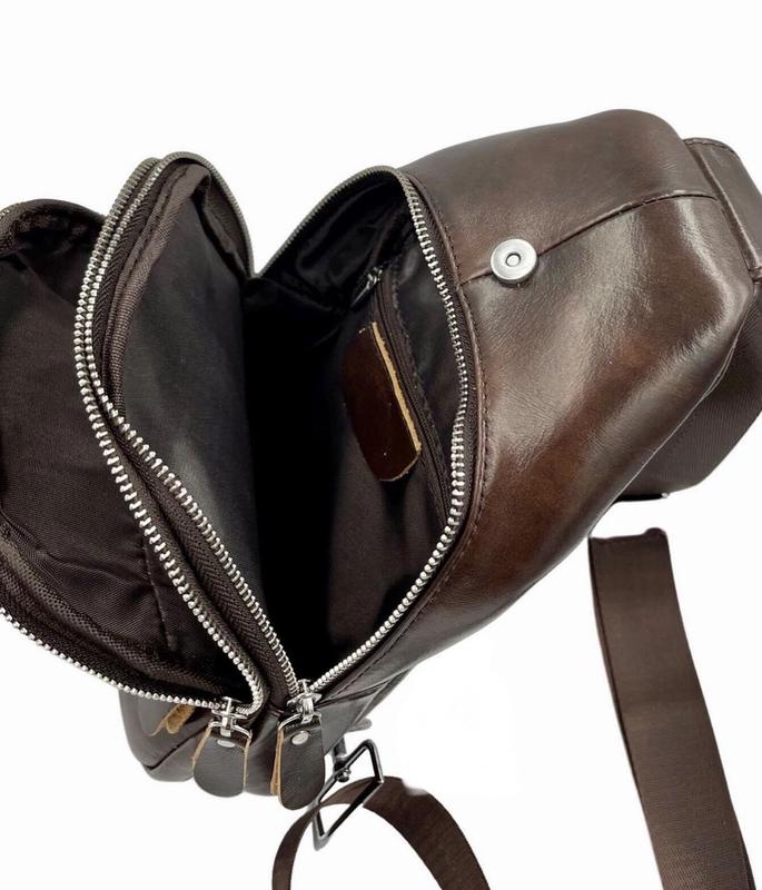 Сумка виконана з натуральної гладкої шкіри з застосуванням якісної фурнітури. Сумка має два відділення на блискавках, всередині основного розташований потайна кишеня на блискавці. На лицьовій стороні додатково є кишені на кнопці і на блискавки. На тильній стороні сумки кишеня на блискавці. У комплекті йде регульований плечовий ремінь. Розмір сумки: висота 31 см, ширина 17 см, глибина 7 див. 🌈в наявності чорна і коричнева. Щоденні відправки 🚀