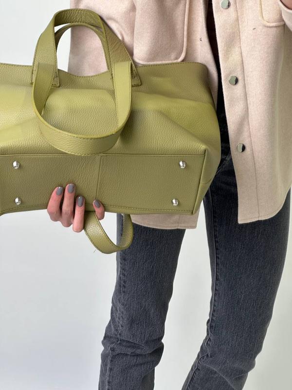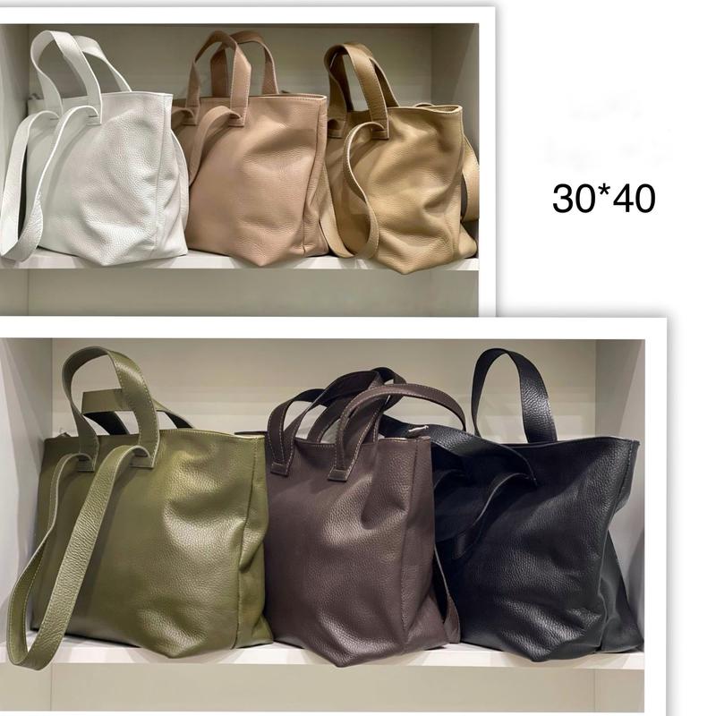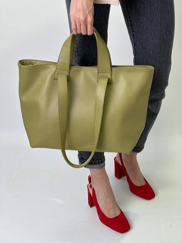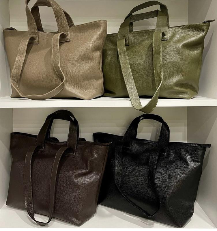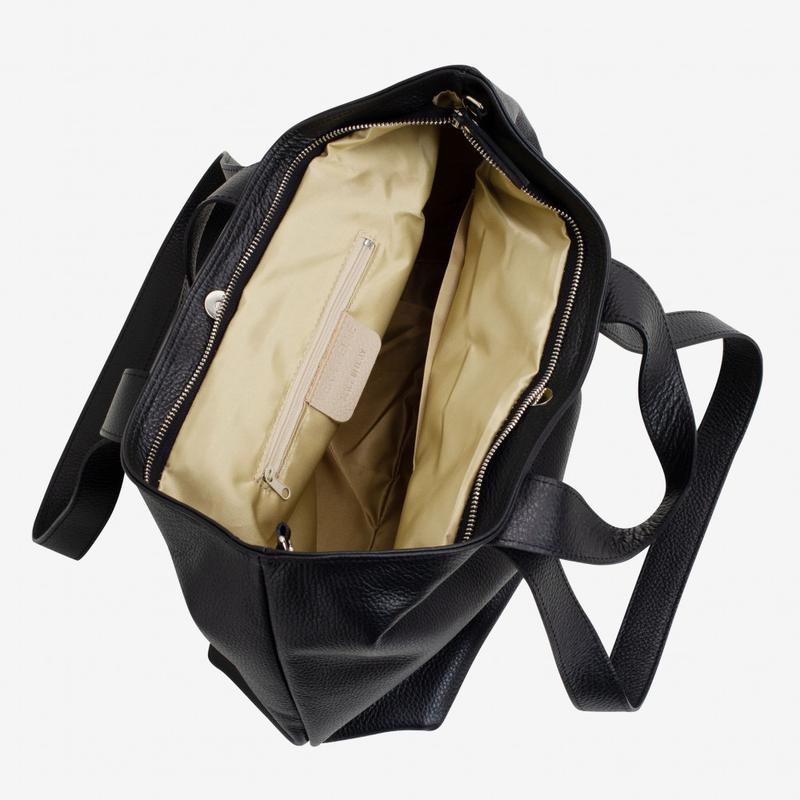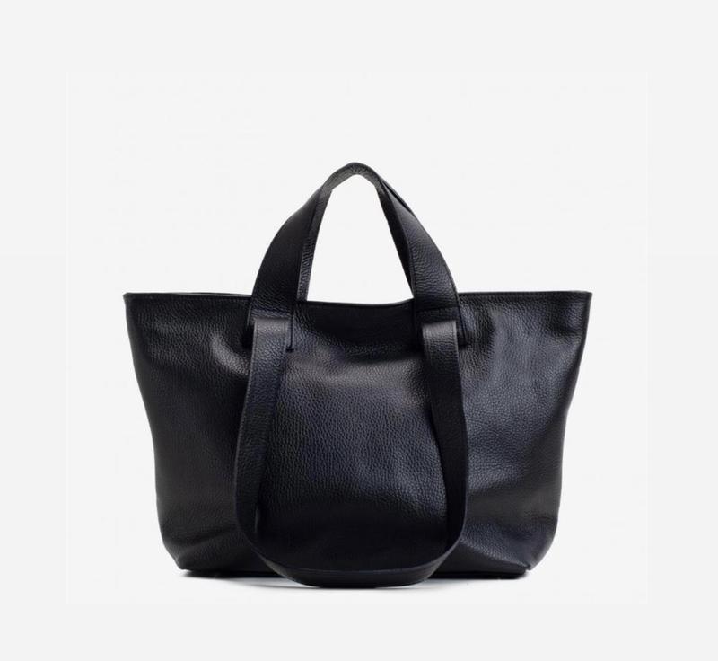 Итальянская вместительная легкая черная кожаная сумка шоппер трансформер с двумя ручками