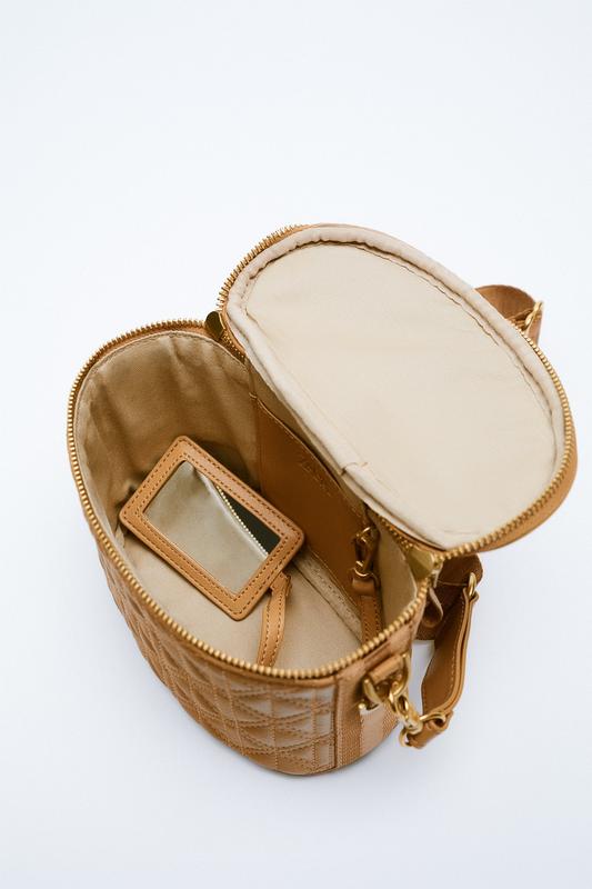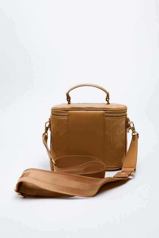 СТЬОБАНА СУМКА З ПЛЕЧОВИМ РЕМЕНЕМ Стьобаний несесер з декоративною строчкою. Мініатюрний гаманець для монет з ланцюжком збоку. Підкладка з кишені, відстібний гачок з люстерком. Ручка, що відстібається плечовий ремінь регульованої довжини. Застібка-блискавка. Висота x ширина x глибина 14 x 19,5 x 10 див.