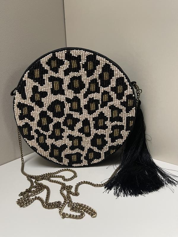 Дизайнерська кругла сумка від mochi Сумочка прикрашена бісером,плечовий ремінь ланцюжок Сумка тверда тримає форму