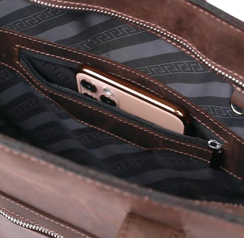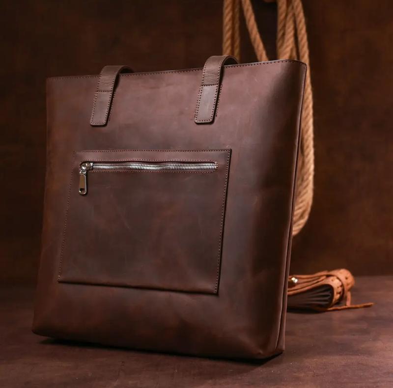 Матеріал: натуральна шкіра. Колір коричневий. Розміри (ШхВхГ, см): 36х33х8, 5 см Країна виробник: Україна. Бренд: Shvigel. Артикул: 16349 Опис: - закривається на блискавку; - усередині потайна кишеня на блискавці; - на зовнішньому боці кишеня на блискавці; - 2 шкіряні ручки. Стильна сумка-шоппер в акуратному лаконічному дизайні від українського виробника. Виконано модель із натуральної високоякісної шкіри з відмінними експлуатаційними характеристиками. Колір виробу - коричневий, фактура - гладка матова, що дуже приємно на дотик. Всередині одне просторе відділення з невеликою потайною кишенею на блискавці.