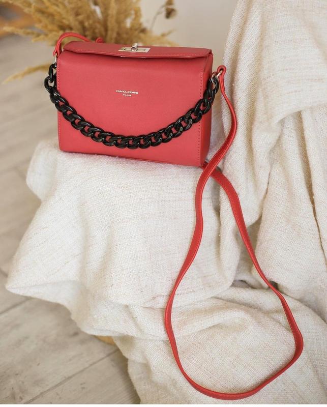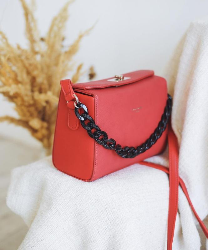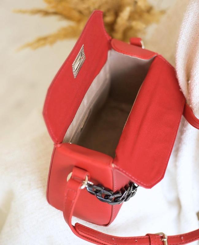 Практична тверда сумочка з елементами декору у вигляді чорного ланцюжка, на якому теж можна носити сумочку ✨ Довгий ремінець у комплекті, що дає змогу носити сумку на плечі. Ззаду є акуратна маленька кишенька. Сумка закривається зверху на замочок, усередині із підкладкою. Розмір: 20,5 х 17 см Основні заміри: - товщина: 9 см - ширина ремінця: 1,5 см
