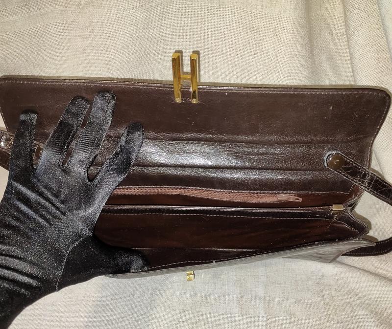 Сумка, клатч з натуральної шкіри крокодила, алігатора в стилі Hermes. ручна робота, вінтаж. Сумка в гарному стані, нюанси тільки на підкладці з штучного матеріалу - місць дрібні подряпини , при носінні це не видно. Ручка знімна на кнопках. Повна оплата на карту банку.