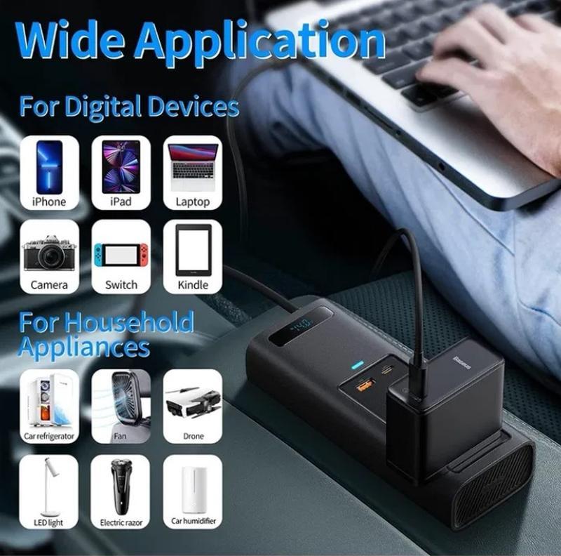 Автомобільний інвертор, перетворювач напруги в прикурювач 12В/220В, 150 Вт BASEUS 150W.