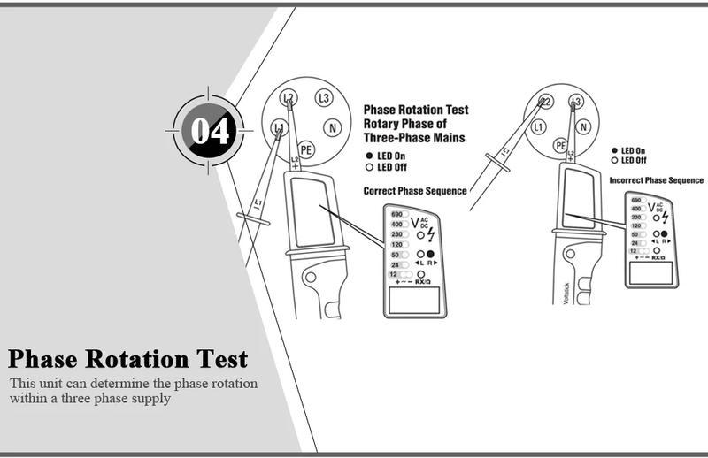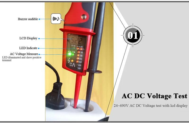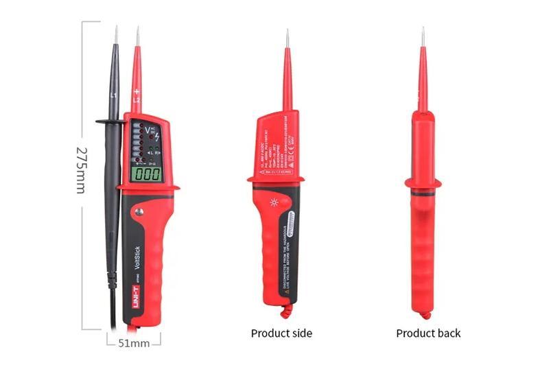 Тестер напряжения UNI-T UT15C/UT18C/UT18D предназначен для измерения постоянного и переменного напряжения (включая трехфазовый переменный ток), индикации фаз трехфазной сети, тестирования устройств защитного отключения УЗО, измерения частоты, определение полярности, прозвонки электрических цепей, проверки одним щупом и др.