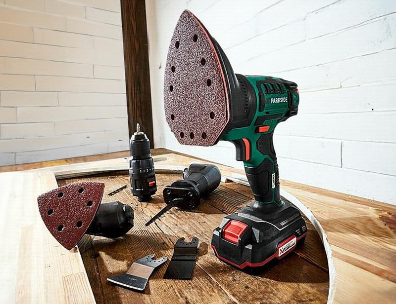 Продаю багатофункціональний інструмент Parkside PKGA 20 LI C2. У цей комплект 4 в 1 входять шуруповерт, пила, реноватор і шліфувальна машинка, що робить його відмінним вибором для різноманітних робіт