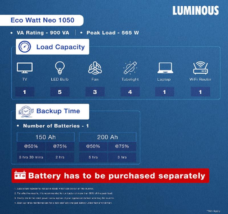 Інвертор прямокутної форми Eco Watt потужністю 900 ВА для дому, офісу та