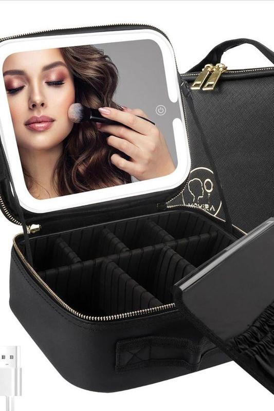 Косметичка-валізатор з led дзеркалом шкіряна (чорна)