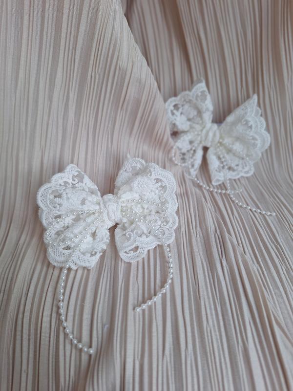 Ніжні мереживні банти пошиті широкого вишитого мережива, дуже гарно виглядають на голові. Основа резиночка велюрчик 4см в діаметрі.Ціна вказана за один бантик 75грнПара - 150грн