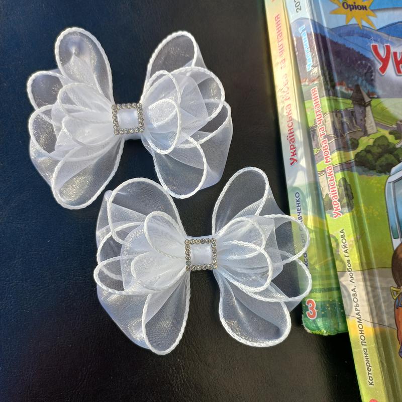 Білі бантики з органзи, кріплення заколочка. Розмір 10×8 см, стильні та неповторні! Ціна вказана за пару!