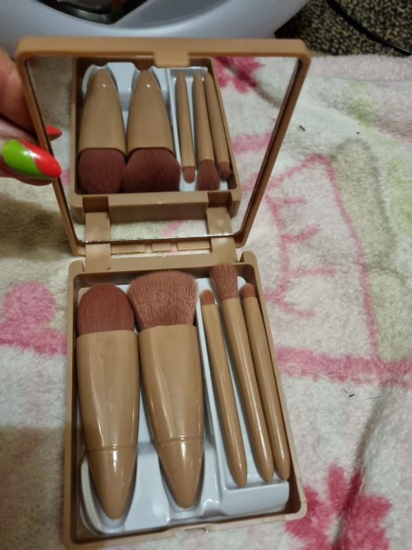 Пензель кабуки-міні у висувному металевому футлярі для пудри, рум'ян maange, колір коричневий
