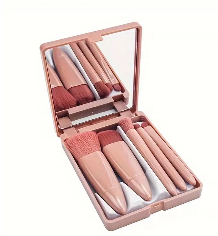 5-елементний набір овальних пензлів для макіяжу з дорожнім футляром тадзеркалом - Багатофункціональні міні-кисті для пудри, рум'ян, тональногокрему, тіней для повік - Неароматизований поліефірний ворс, який підходить длявсіх типів шкіри.