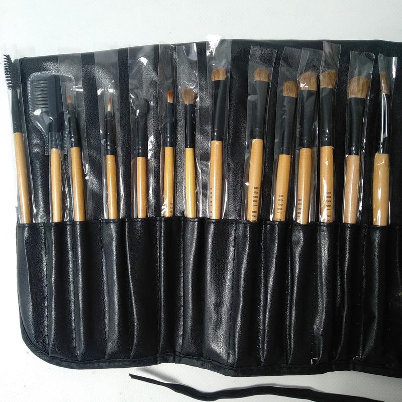 Набір з 18 кистей Боббі Браун (Bobbi Brown) Набір кистей для макіяжу из18 інструментів Bobby Brown Luxury. У цьому наборі Ви знайдете неперевершені професійні кисті, які надихають на нові звершення. Ворс кистей виконаний з високоякісних натуральних матеріалів (поні, білка, коза, соболь). В наборі також є кисті з синтетичним ворсом для роботи з рідкими матеріалами і змішування текстур. Ручки кистей Бобі Браун (Bobbi Brown) виконані з полірованого дерева (біла береза). Колекційний набір кистей упакований в стильний шкіряний футляр з окремими зручними кишенями для кожної кисті і спеціальним протектором, який захистить кисті від бруду і пилу. Футляр оснащений шкіряними зав'язками. Щетина пензликів для макіяжу м'яка, приємна на дотик. В набір увійшли кисті: велика віялова кисть (натуральний ворс кози),велика кисть для пудри (натуральний ворс кози),пензель для рум'ян (натуральний ворс кози),маленька кисть для рум'ян (натуральний ворс кози),скошена кисть для корекції (натуральний ворс кози),8 пензликів для нанесення і розтушовування тіней (натуральний ворс соболя), синтетична віялова кисть , синтетична кисть для тони, синтетична скошена кисть скошена, синтетична кисть для розтушовування олівця, синтетична кисть для консилера, синтетична кисть для макіяжу губ синтетичний пензель для лайнера, пензлик-аплікатор нейлонова, щіточка для туші, двостороння щітка для розчісування вій і брів. Пориньте у світ природної краси. Будьте впевнені – кисті BB ніколи не підведуть!