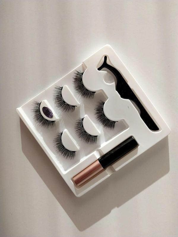 Набір багаторазових вій на магнітній підводці + магнітна підводка + пінцет.