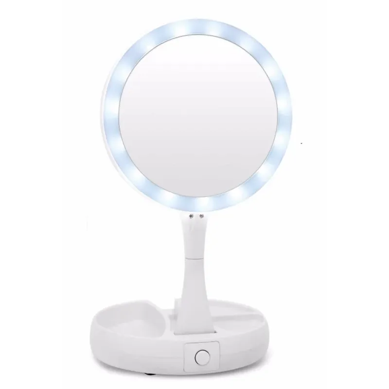 Дзеркало — це необхідна річ для кожної жінки незалежно від віку та способу життя. Завдяки дзеркалу з підсвіткою набагато зручніше доглядати шкіру та наносити макіяж. Дзеркало Fold Away — це дзеркало, яке можна швидко скласти/розкласти та використовувати в будь-якій кімнаті вдома та в будь-якому місці, хай де ви будете! Воно спирається на власну підставку, а також повертається й обертається. Це дзеркало двостороннє, з одного боку дає вам реалістичний вигляд вашого обличчя, а інший бік буде показувати його вдесятеро більше. Крім того, під час натискання кнопки в нижній частині стійки ви можете вмикати світлодіодну підставку, які освітлюватимуть обидві сторони. Після використання My Folday Mirror легко складається для зручності зберігання і транспортування. У опорі дзеркала є відділення, де ви можете зберігати невеликі аксесуари, як-от зав'язки для волосся або затискачі. Дзеркало ідеально підходить для нанесення косметики, виконання косметологічних процедур, одягання контактних лінз. Супер'яскравий світлодіод з обох боків для ідеальної картини освітлення, що не ковзає скло. Легке та компактне дзеркало можна брати в подорожі. Ідеально підходить для нанесення макіяжу, вставивши контактні лінзи, брови та багато іншого. Особливості: • Без спотворень: він не спотворює віддзеркалення, показуючи вам, тільки реальне відбиття. Складаний: наше дзеркало ручці для зручності та основа має 3 відділення для зберігання аксесуари краси. Переваги дзеркала My Fold-Away Mirror про Супер'яскраві світлодіодні індикатори з обох боків створюють ідеальне рівномірне освітлення. про Дзеркало не має спотворень про зворотний бік — додатковий з 10-кратним збільшенням легко складається для зручного зберігання про підставку вбудований органайзер для аксесуарів світлодіоди розраховані на 30 000 годин про Легке та компактне — завжди та скрізь із тобою о Потрібно 4 батареї типу AA (не входить до комплекту) про Діаметр 15,7 см