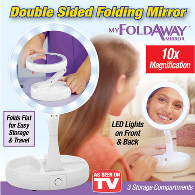 освещать обе стороны. После использования, My Foldaway Mirror легко складывается для удобства хранения и